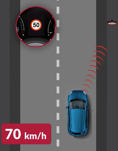 Systém vás upozorní, keď neúmyselne prekročíte jazdný pruh bez použitia smerovky. Asistent udržiavania v jazdnom pruhu vás upozorní priamo na prístrojovom paneli a jemne pohne volantom, aby ste sa vrátili späť do jazdného pruhu. K dispozícii len vo verzii Sport.