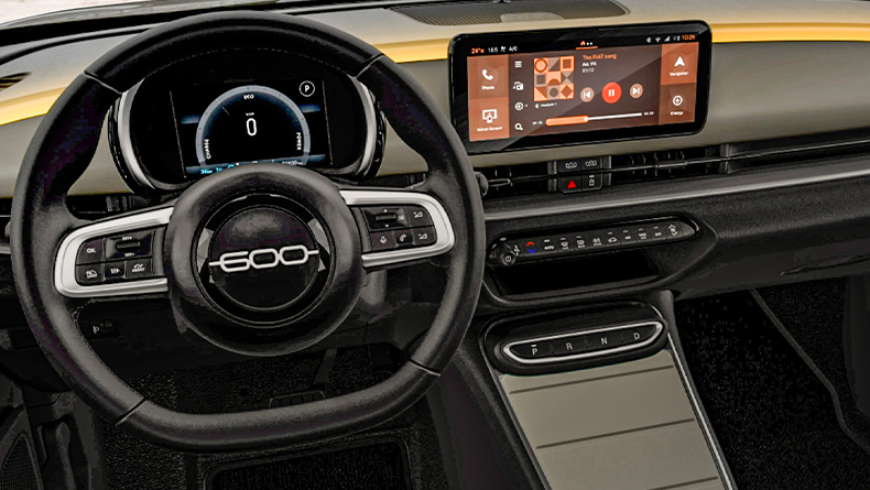 Zažite pravý životný štýl Dolce Vita s interiérom premium v slonovinovej farbe a tyrkysovým monogramom FIAT.