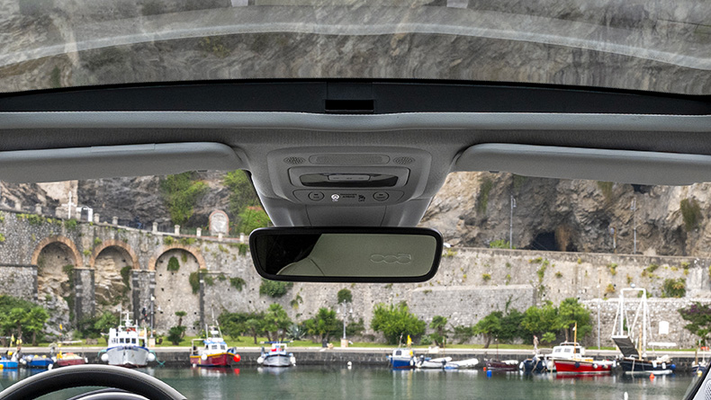 Nechajte svet preniknúť cez presklenú strechu, ktorá zaplaví váš Fiat 500 Hybrid prirodzeným svetlom a dodá štýl každej ceste.