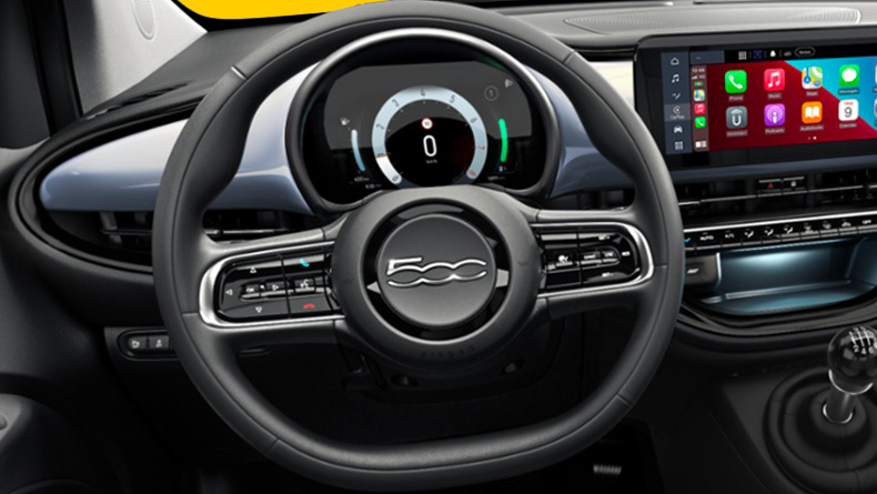 Model 500 Hybrid Icon spája eleganciu a praktickosť: je to auto navrhnuté tak, aby ponúkalo komfort, inteligentnú konektivitu a plynulú jazdu, pri ktorej máte všetko pod kontrolou.