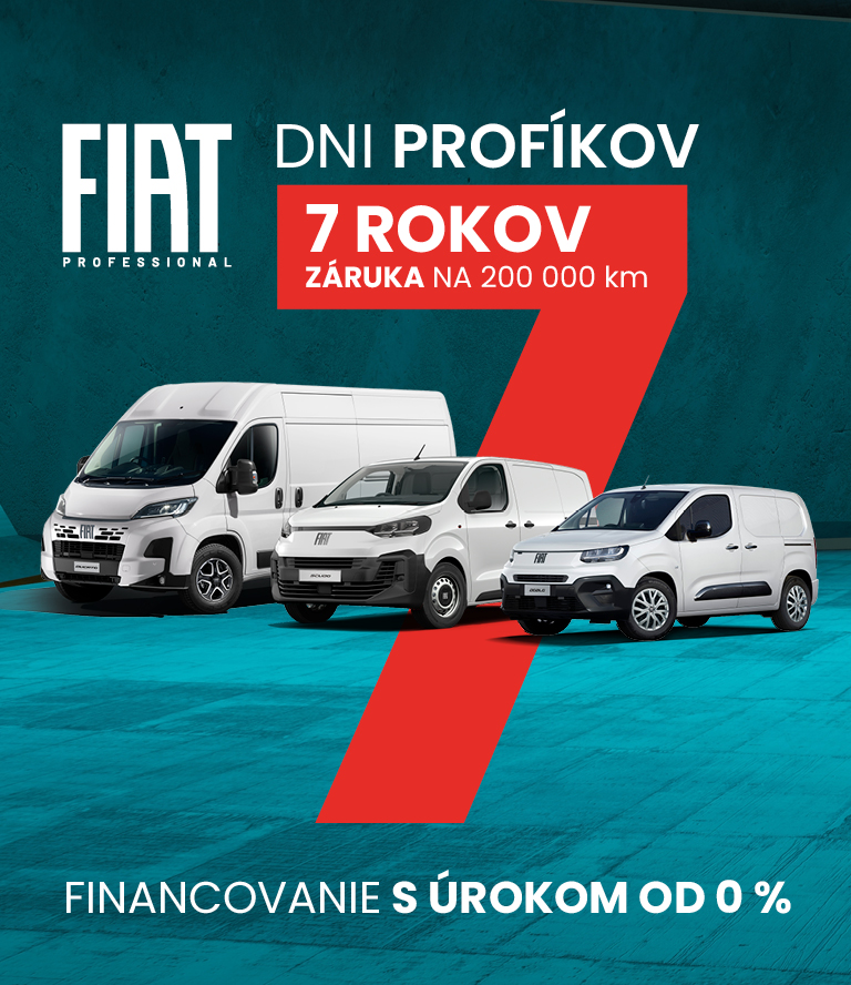 *bez DPH. 1)Ponuka záruky 7 rokov / 200 000 km zadarmo a akciové financovanie s úrokom od 0% platí na všetky spaľovacie verzie modelu Ducato, Scudo a Doblò Professional do 30.6.2026.